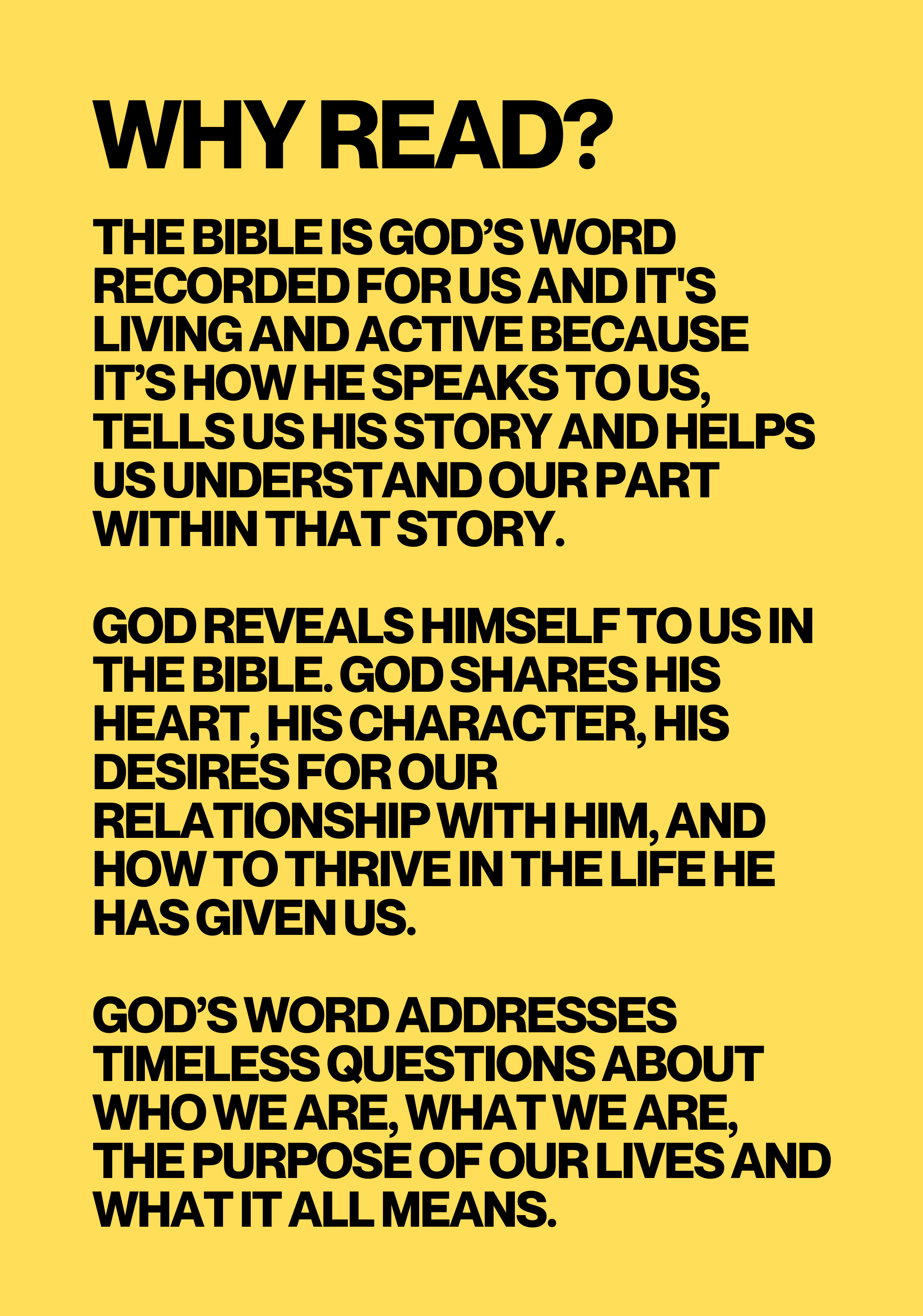 We're excited for this year and believe the best is yet to come. This year, we're studying the Bible together as a community. We believe as we dive in daily, God will meet us. Join us on this 365-day journey through the Bible.