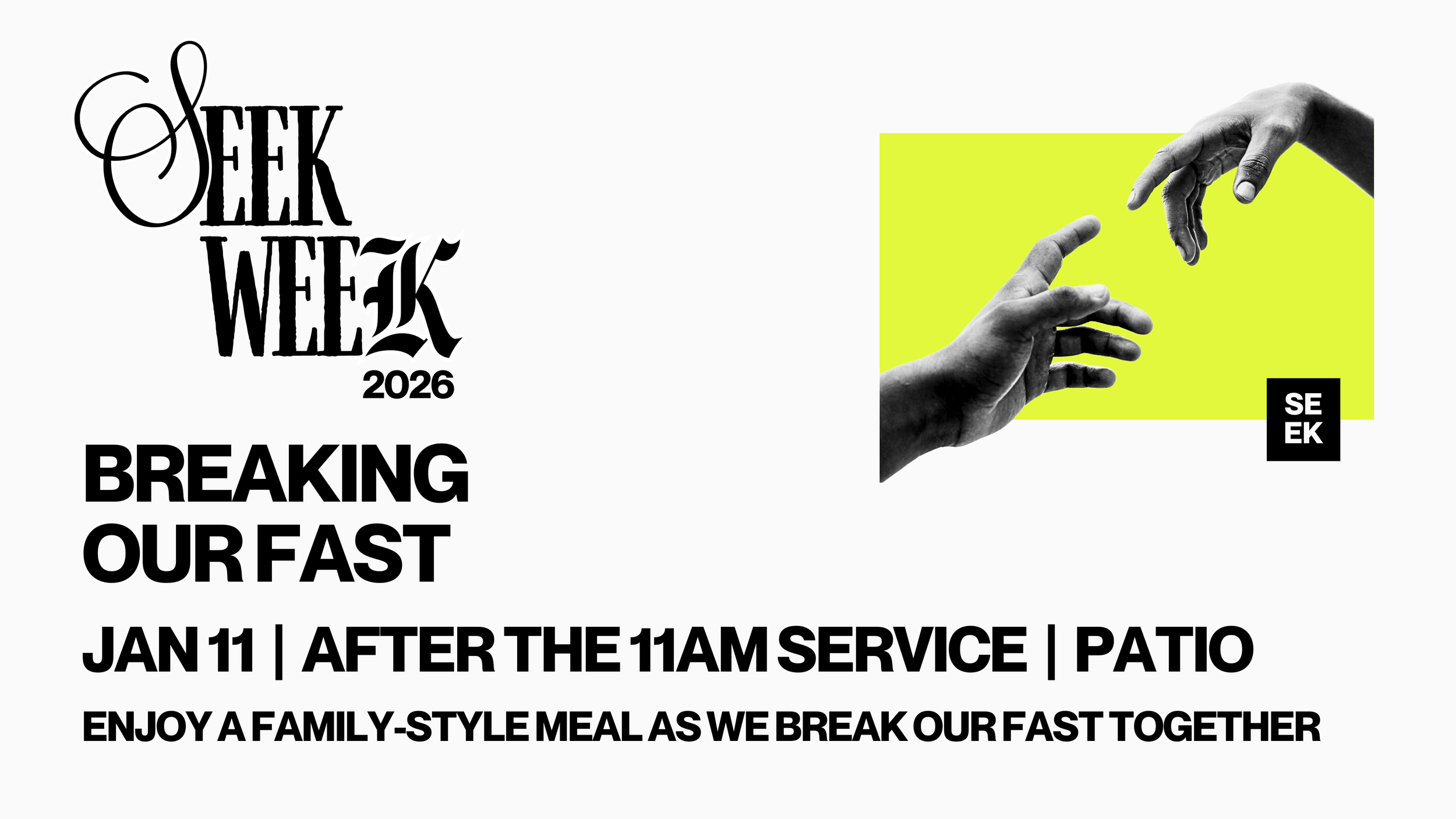 Seek Week is an opportunity to intentionally remove distractions and disrupt our normal routines to listen more carefully to God’s voice and focus on what He is saying and doing.
